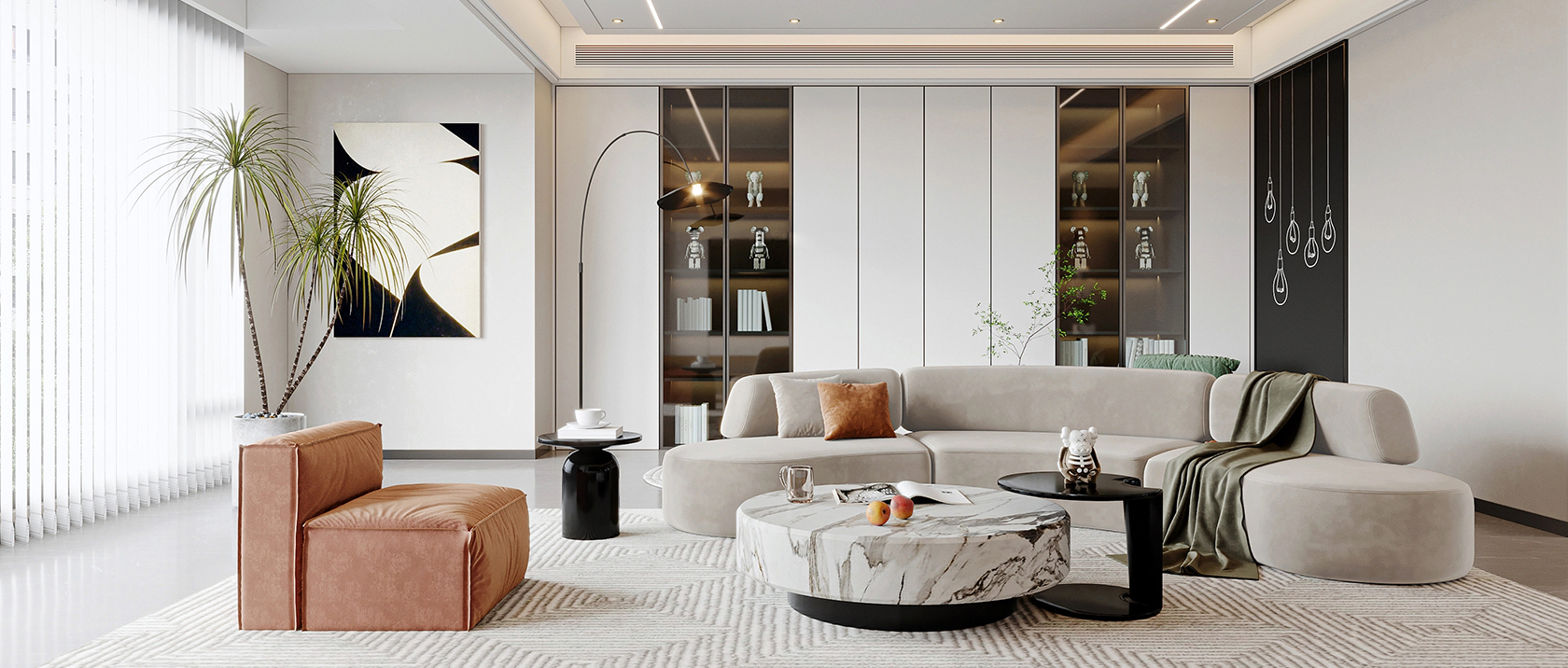 集合業內優秀的軟、硬裝設計師團隊,從整體效果出發,真實材料3D建模,一體化設計實現1:1落地還原效果。
