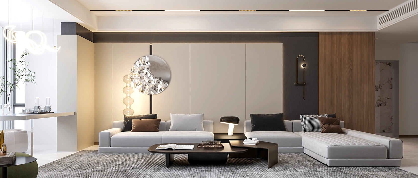 輕奢是一種品質,也是一種生活態度,在極簡、內斂的空間里,處處彰顯精致、舒適的生活品味。